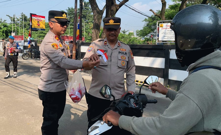 Sapa pengendara dan lingkungan warga, sitengah isu pengibaran bendera one piece, Polisi serukan jiwa nasionalisme cinta tanah air, cinta merah putih.