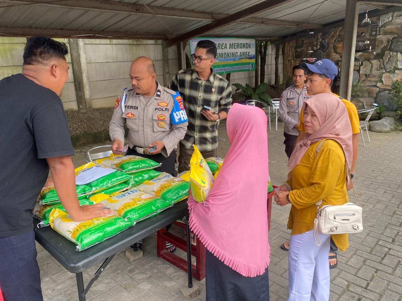 Beras bertuliskan stabilitasi pasokan dan harga pangan (SPHP) dari Bulog dijual murah kepada masyarakat. Warga yang ingin membeli cukup datang ke kantor Polsek Panongan.