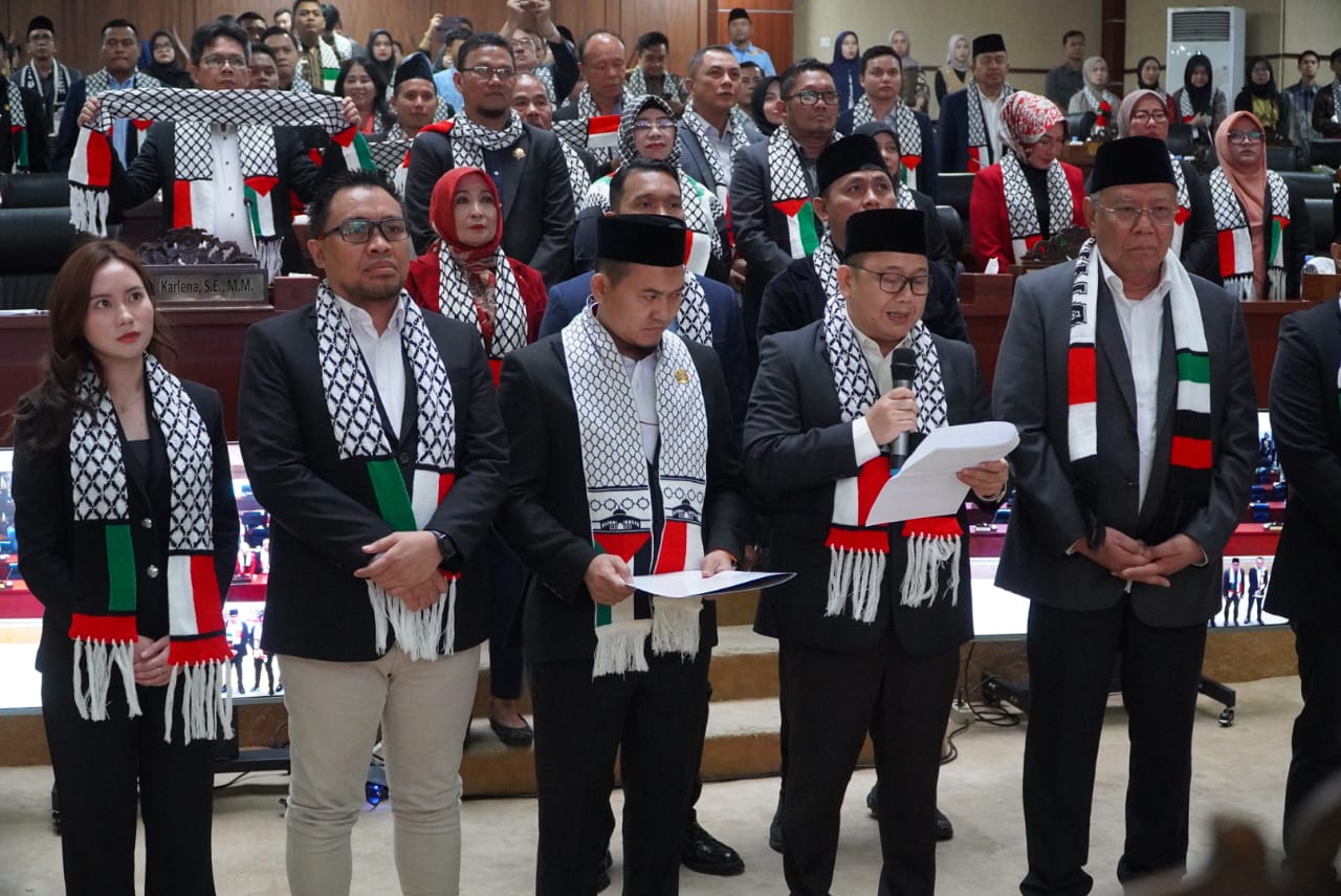 Dengan mengenakan syal Palestina oleh seluruh anggota DPRD Kota Tangsel, DPRD Kota Tangsel menyampaikan tiga sikap resmi. Pertama, mengutuk keras agresi militer dan pelanggaran HAM yang dilakukan Israel terhadap rakyat Palestina, serta menuntut segera dibukanya blokade untuk menjamin akses kemanusiaan.