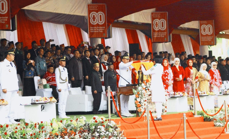 TANGERANG,BANTENEKSPRES.CO.ID – Upacara detik-detik proklamasi dan pengibaran bendera merah-putih hari ulang tahun (HUT) Kemerdekaan RI ke-80 di Kota Tangerang berlangsung di alun-alun Ahmad Yani, Kelurahan Sukarasa, Kecamatan Tangerang, 17 Agustus 2025 pagi WIB.