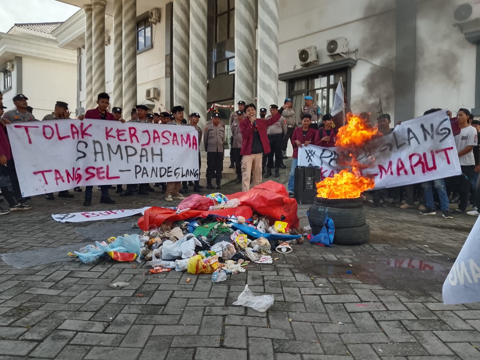 “Kami hari ini melakukan aksi untuk menyuarakan agar perjanjian kerja sama (PKS) pembuangan sampah antara Pemkab Pandeglang dan Pemkot Tangsel dibatalkan,” kata Tegar Alimidin, Koordinator aksi ikatan mahasiswa muhamadiyah (IMM) Pandeglang, kepada Bantenekspres, Rabu 20 Agustus 2025.