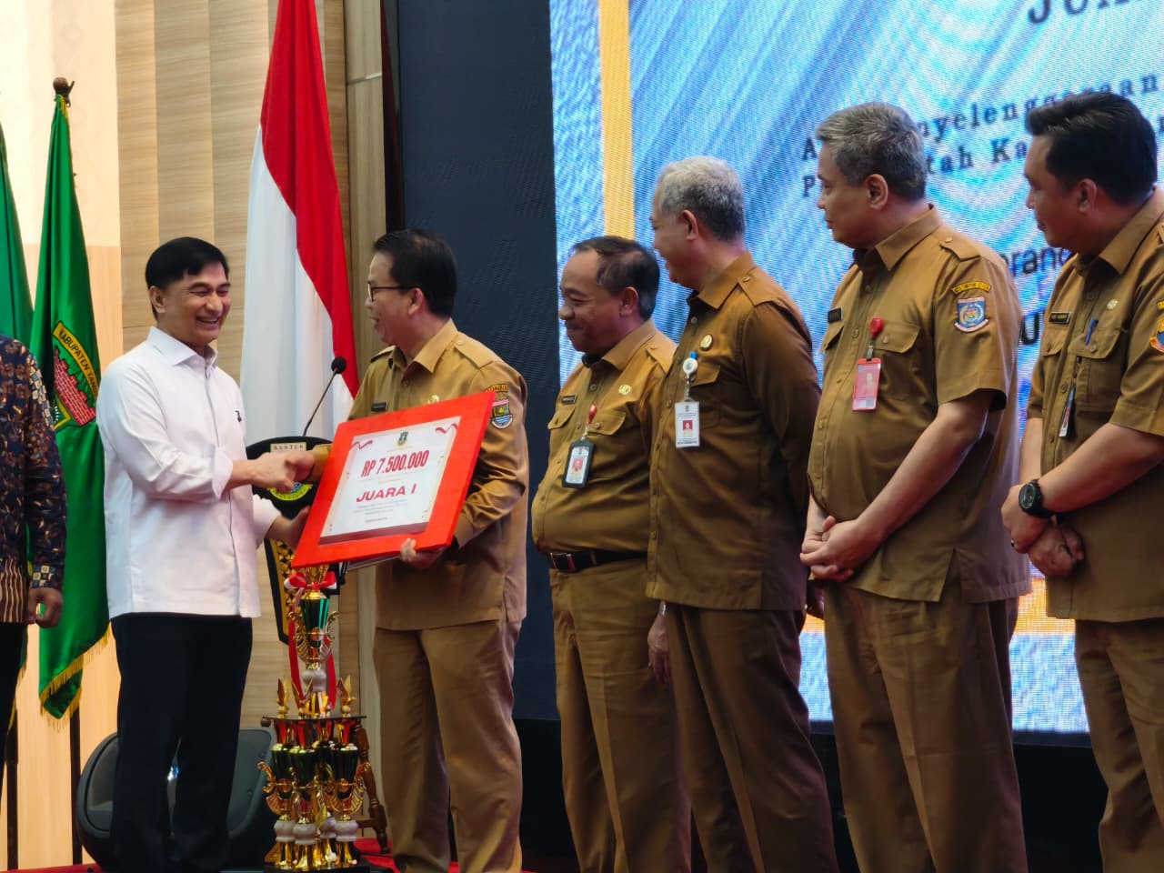 Penyerahan penghargaan dilakukan oleh Wakil Gubernur Banten, Achmad Dimyati Natakusumah di Pendopo Gubernur Banten, KP3B, Kota Serang, Selasa 26 Agustus 2025.