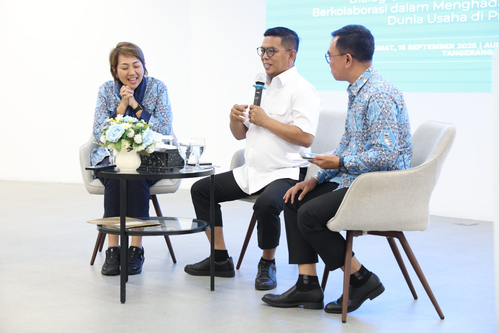 Dialog mengusung tema Berkolaborasi dalam Menghadapi Kendala dan Tantangan Dunia Usaha di Provinsi Banten.