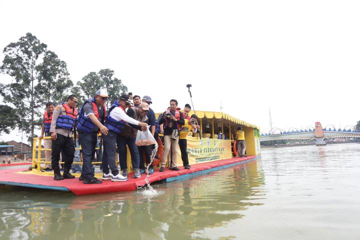 KOTATANGERANG, BANTENEKSPRES.CO.ID-Warga bisa menikmati indahnya sungai Cisadane dengan naik kapal wisata Katamaran Bumi Pertiwi. Bayarnya, bisa pakai sampah seperti botol plastik, minyak jelantah dan lainnya. Cukup dengan membayar pakai 5 botol plastik, warga diajak menyusuri sungai Cisadane dengan kapal wisata.