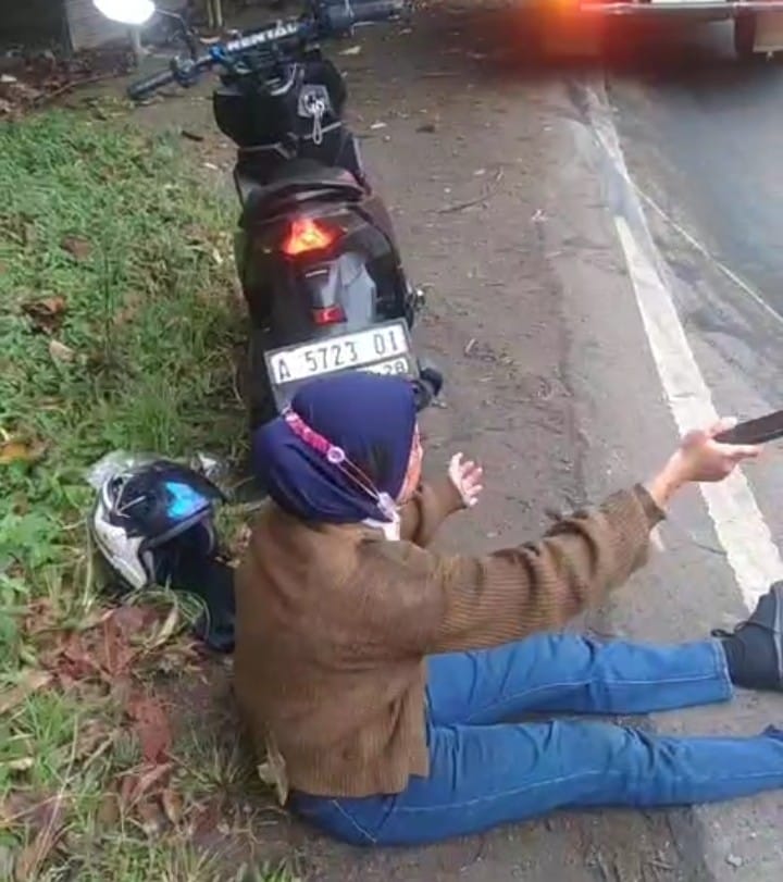 PANDEGLANG,BANTENEKSPRES.CO.ID – Sejumlah pengendara motor di jalan Lebak sereh atau jalan AMD lintas timur Karang Tanjung, Pandeglang banyak terjadi kecelakaan tunggal khususnya motor roda dua terjatuh akibat jalan licin, diduga ada cairan mengandung solar atau oli yang tumpah di sepanjang jalan tersebut.