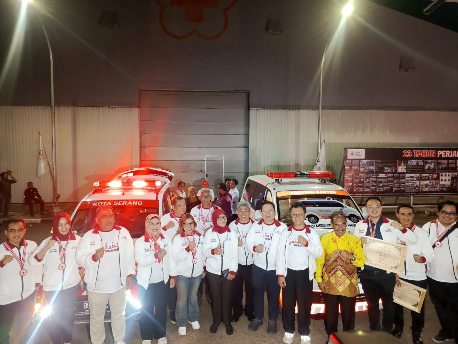 SERANG,BANTENEKSPRES.CO.ID – Palang Merah Indonesia (PMI) Provinsi Banten memberikan, penghargaan kepada sahabat PMI, sekaligus penyerahan dua mobil ambulance, di Markas PMI Provinsi Banten, Kota Serang, Kamis 30 Oktober 2025 malam hari.