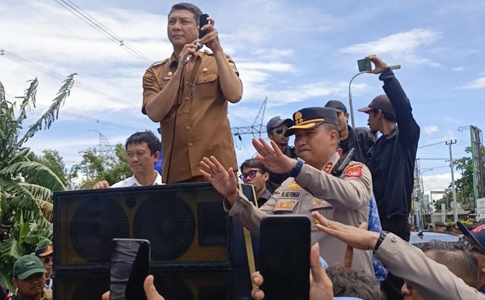 Masa aksi akan terus melakukan demonstrasi hingga pukul 17.00 WIB, sembari menunggu kedatangan Andra Soni.