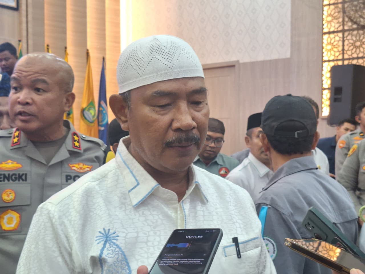 SERANG, BANTENEKSPRES.CO.ID – Sejumlah warga asal Padarincang, Kabupaten Serang mengikuti rapat bersama Gubernur Banten Andra Soni terkait penanganan banjir di Kabupaten Serang, rapat digelar di Pendopo Gubernur Banten, KP3B, Kota Serang, Selasa 23 Desember 2025.