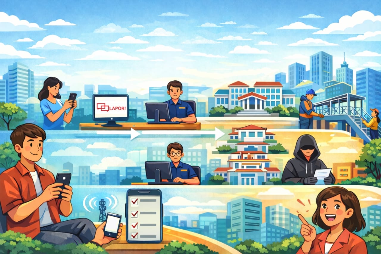 Baik melalui aplikasi maupun website, mekanisme pelaporan dibuat sederhana. Warga cukup menjelaskan permasalahan yang dialami secara jelas, mencantumkan lokasi kejadian, dan memilih kategori laporan agar aduan dapat diteruskan secara tepat.