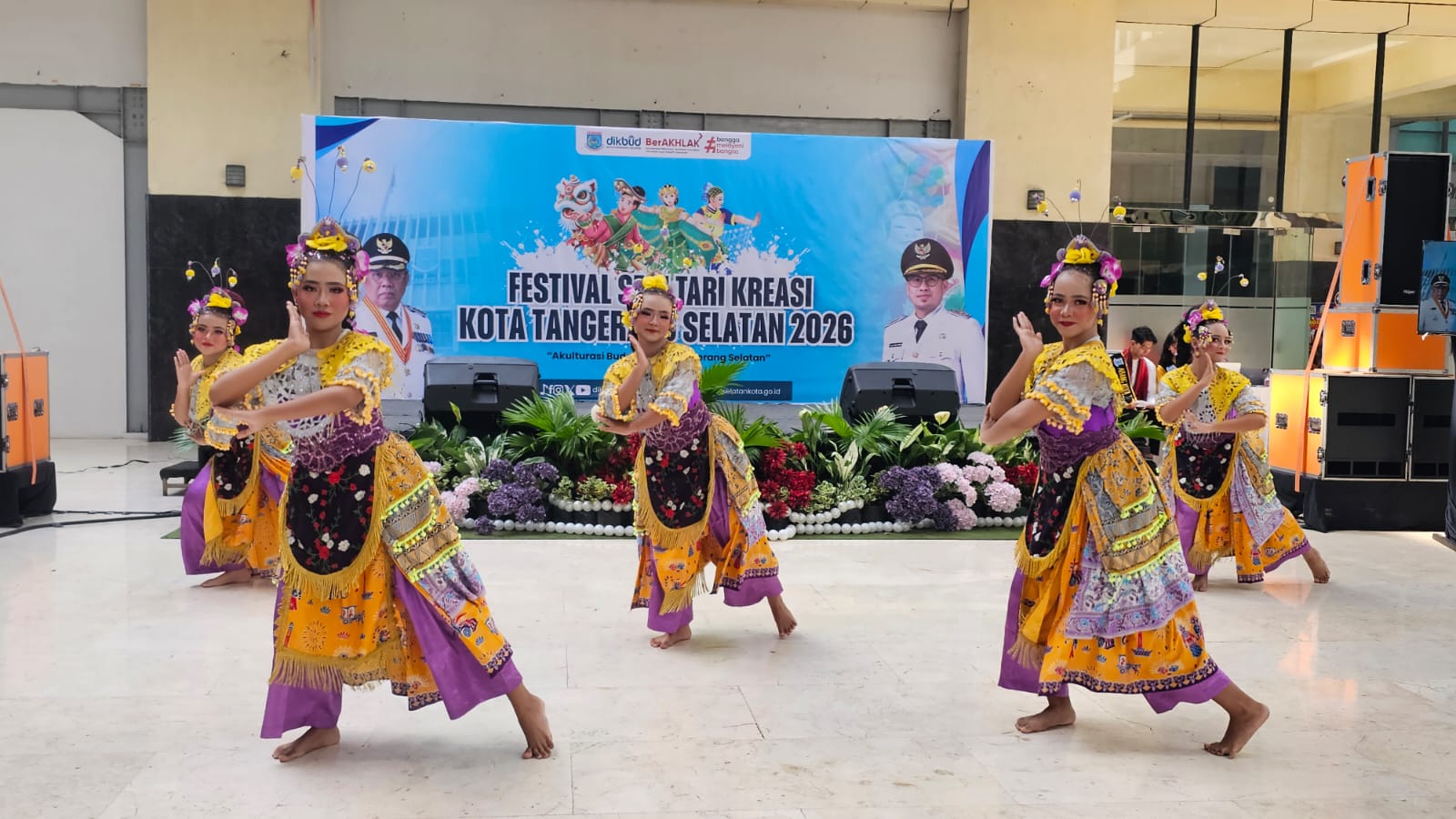CIPUTAT,BANTENEKSPRES.CO.ID – Seratusan penari yang berasal dari 15 sanggar tari di Kota Tangsel ambil bagian dalam Festival Seni Tari Kreasi. Lomba tari dengan tema “Akulturasi budaya Kota Tangsel 2026” tersebut dilaksanakan di Plaza Rakyat, Balai Kota Tangsel, Rabu, 11 Februari 2026.