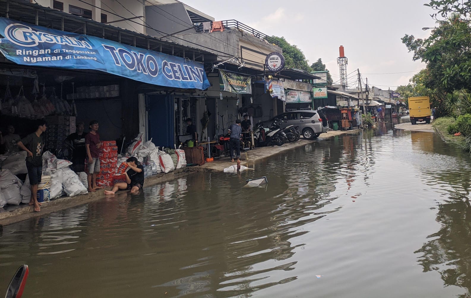 “Kalau di pinggir jalan sih tinggal selutut orang dewasa, tapi di dalam gang yang tanahnya lebih rendah kemarin sempat sampai sekitar satu meter,” ujarnya.